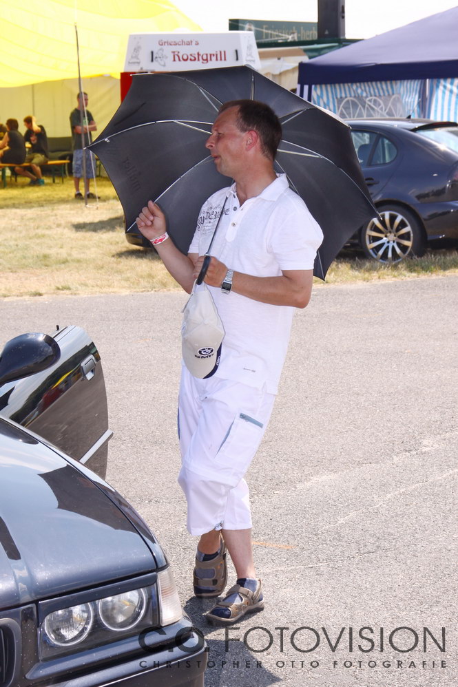 Währenddessen kämpften die Teilnehmer am Show&Shine-Contest um die insgesamt 80 Pötte. Als besonderes Bonbon hatten die Veranstalter für die ersten Drei in der Best-of-Show-Wertung Preisgelder in dreistelliger Höhe ausgelobt. Auch der Gewinner der Publikumswertung bekam noch 50 €, die er angesichts des Wetters gleich an der stark umlagerten Eisbude umsetzen konnte. Die Stimmung auf dem Platz war gut und die Organisation passte. Das ist insbesondere Angesichts der Tatsache bemerkenswert, dass hier noch alles in Eigenregie organisiert und abgewickelt wird, ohne auf die Hilfe großer Event-Agenturen zurückzugreifen. Christoph und seine Freunde machen das Ganze aus Spaß an der Freude und am Tuning und konnten sogar in wirtschaftlich schlechten Zeiten etliche Sponsoren und Regionalpolitiker für ihr Projekt begeistern. Dafür unseren Respekt! Die Qualität der Fahrzeuge war ziemlich hoch, auch wenn sich das Besucherspektrum angesichts des Tagesevents größtenteils aus dem regionalen Einzugsbereich rekrutierte.
